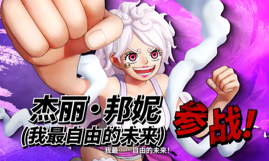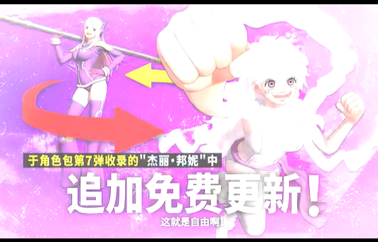 动作游戏《海贼无双4》2025年12月份揭开DLC“未来岛蛋头包”免费更新内容,添加新角色乔艾莉·波妮的“尼卡”形态宣传预告画面截图