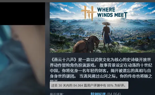 国际服上线一个月2025年12月份新数据显示玩家突破一千五百万了,好评高度88%,Steam平台是全球销量前三名之内绝对是非常好武侠大作